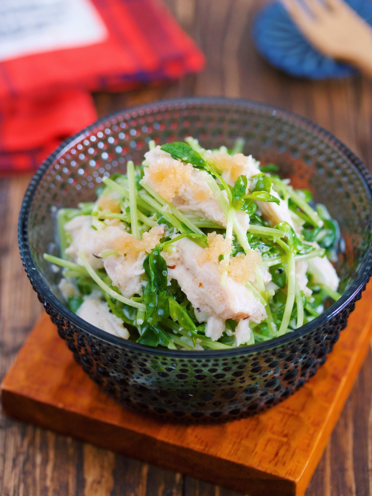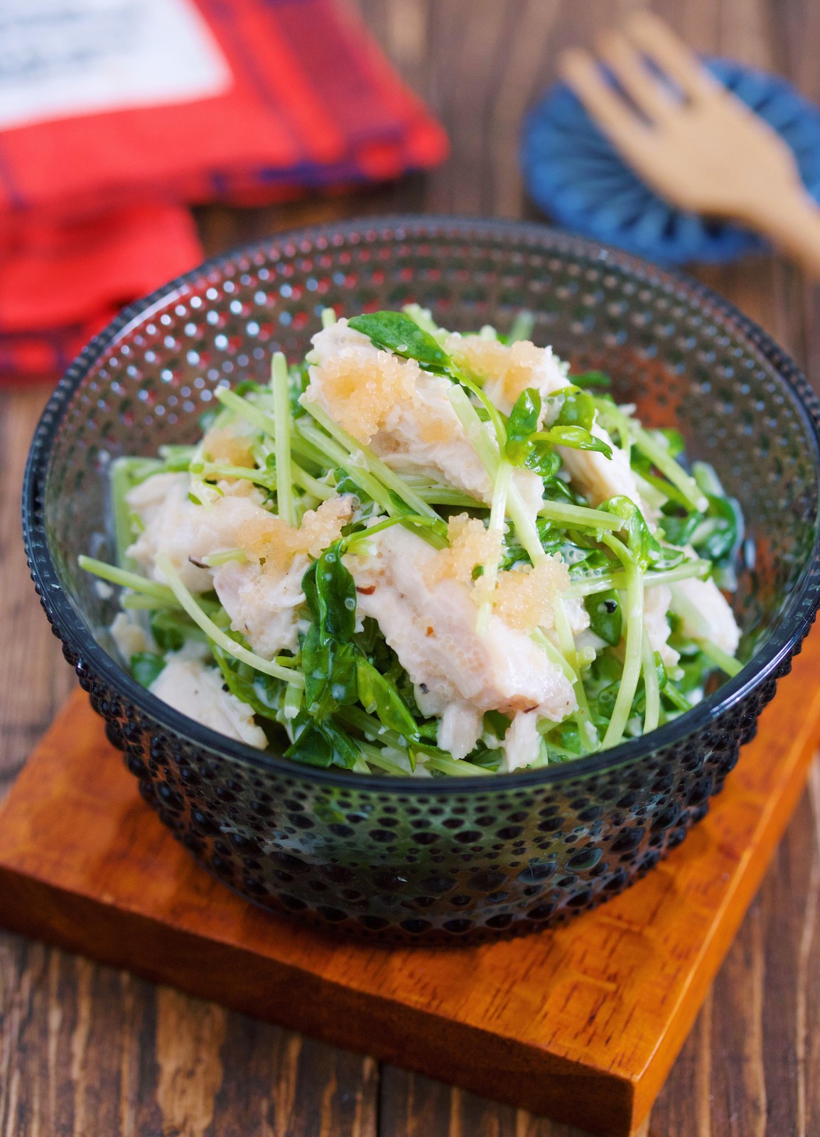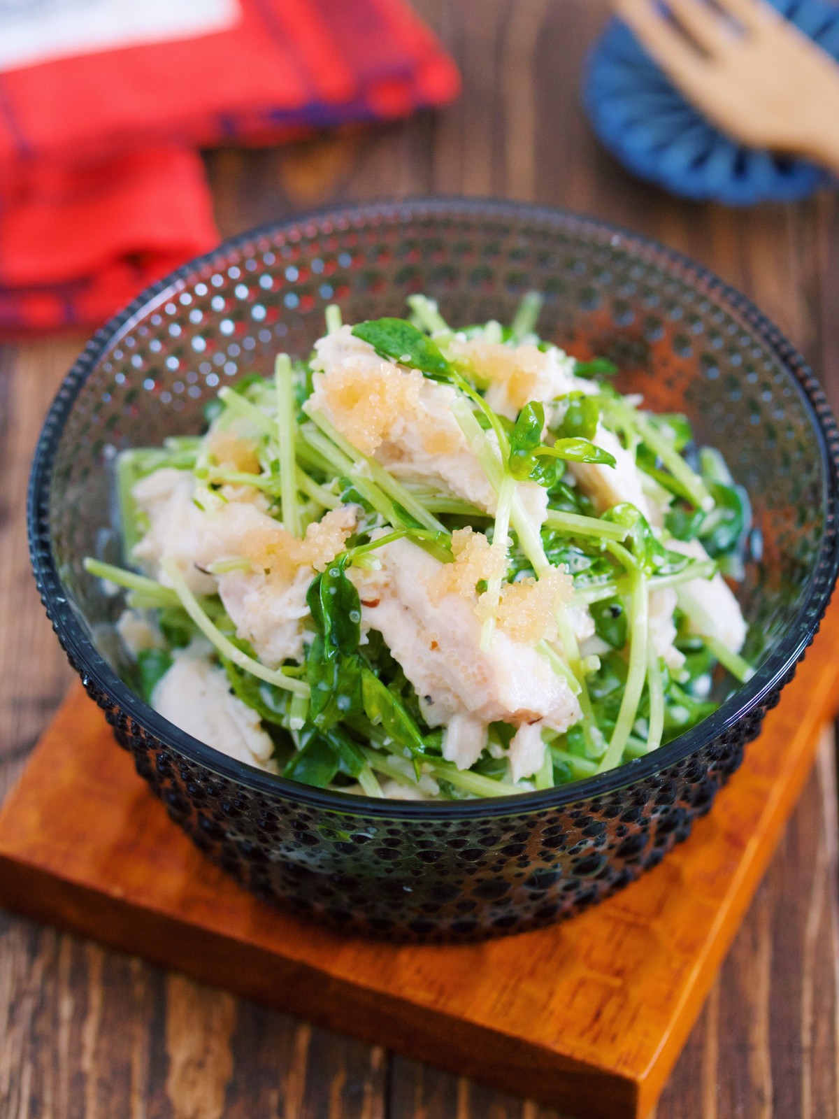 《蒸し鶏と豆苗のやみつき♡たらマヨサラダ》