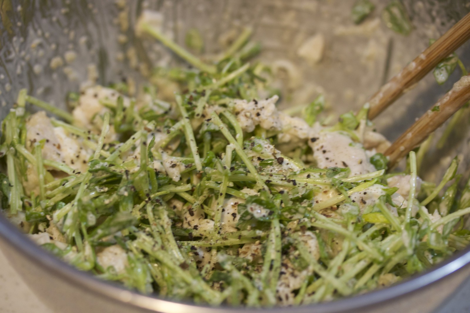 淡白なささ身と豆苗が