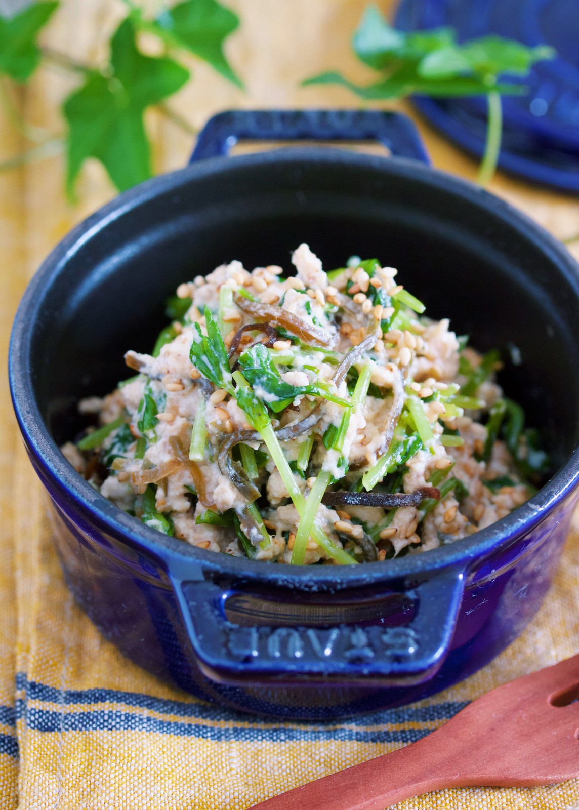 《豆苗と塩昆布のツナマヨ白和え》