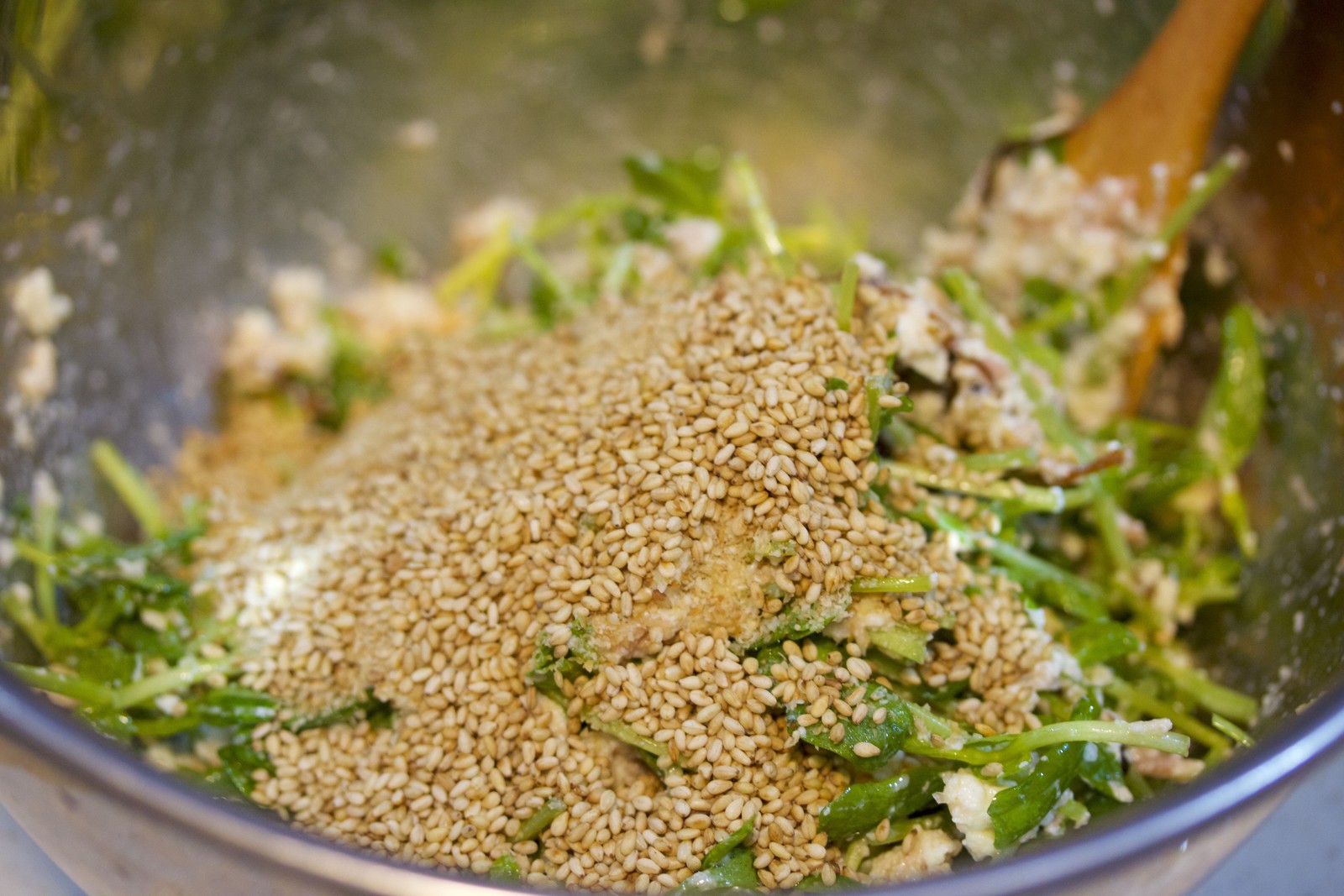 あとは、これに豆苗とごまを加えて