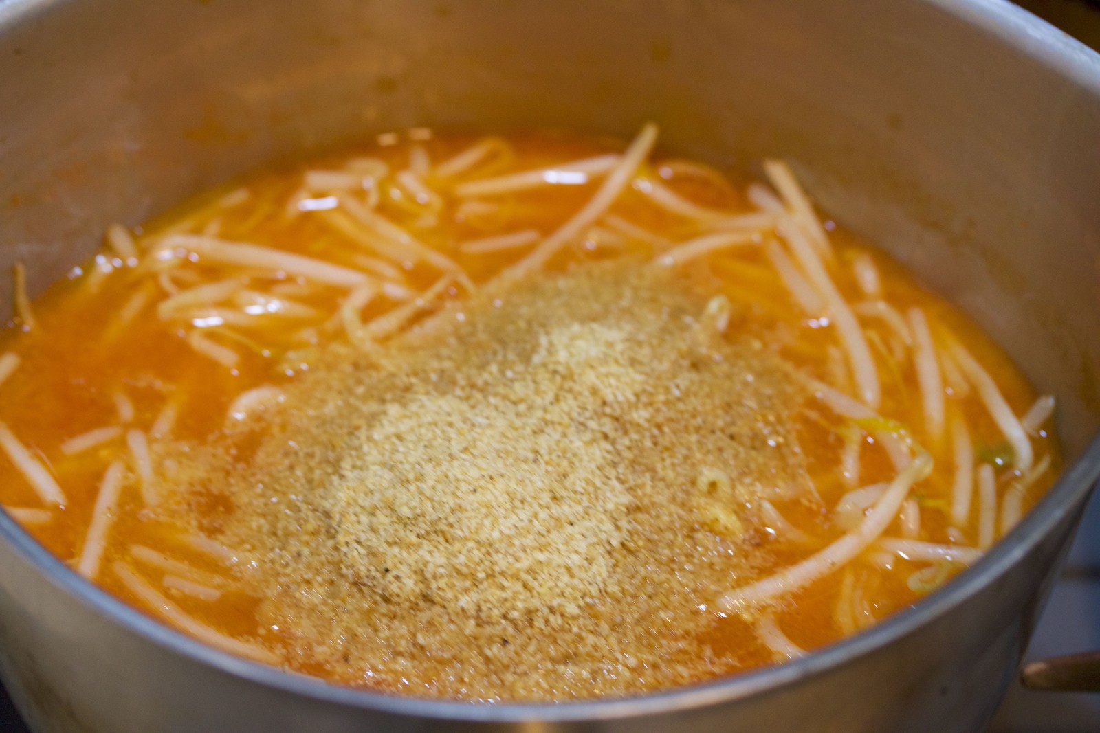 お財布にも身体にもやさしいもやしだけのポカポカスープ。作り方は、めちゃめちゃ簡単でお鍋で煮汁を沸騰させたらあとは、もやしを加えてサッと煮るだけ。具材は、もやしだけととってもシンプルですが 味噌とごまの風味が生きているのでごくごくと飲み干すほど♡