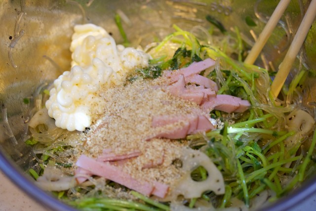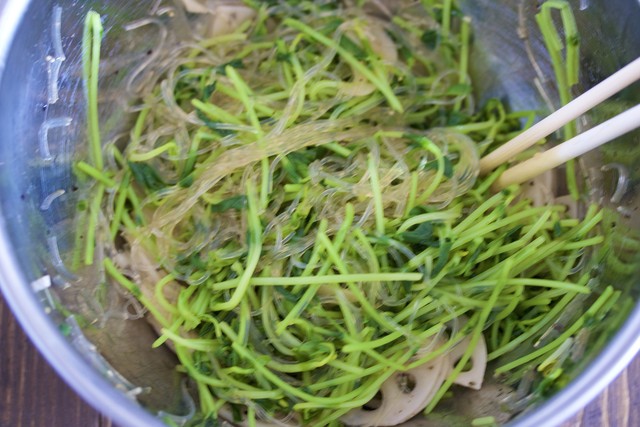 春雨→レンコン→豆苗の順にサッと茹でて