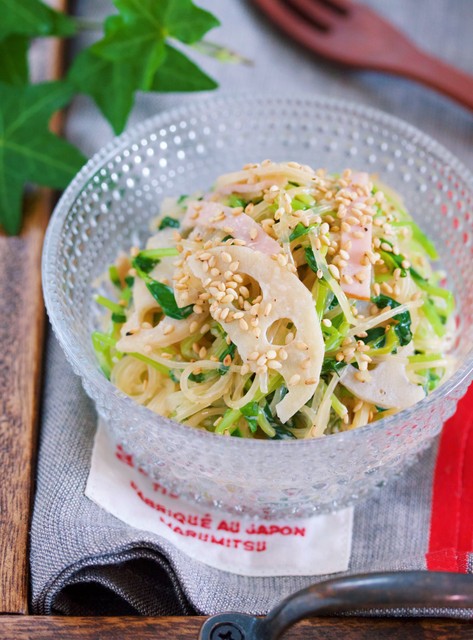 《レンコンと豆苗の春雨サラダ》