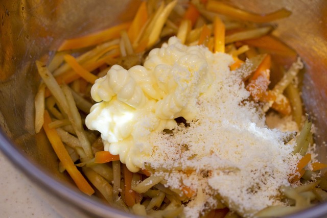 あとはツナマヨ+チーズ+ごまで和えるだけ。