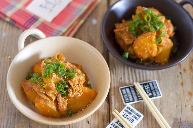 「新じゃがと豚バラのピリ辛味噌煮」レシピ