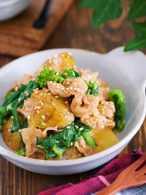 《新じゃがと菜の花の肉じゃが風♡おかずポテサラ》
