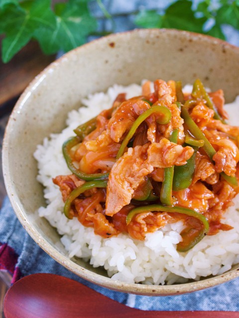 使う食材は、お財布にやさしい豚こま・玉ねぎ・ピーマン。冷蔵庫に常備してあることの多い食材たちでもありますよね♪今回は、これらを使って洋風のポークチャップ丼に。豚こまって固くなりやすい食材ですがこの作り方で作れば感動の柔らか食感になりますよ〜♪ちなみに、味付けにはケチャップ+ウスターソースを使うのでとーってもお手軽!男子もお子様も大喜び間違いなしですよ!