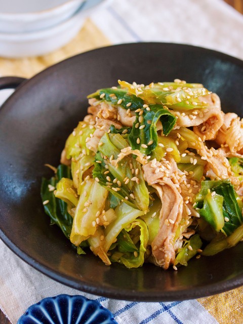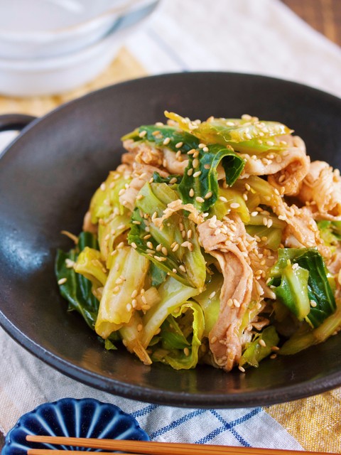 豚肉とキャベツをフライパンに重ねて6分ほど蒸し焼きに♪あとは、ネギ・しょうが・ごまたっぷりの香味だれと和えて完成です!蒸し焼きにするのでヘルシーで長ネギをキッチンバサミで切ればまさに包丁いらずで出来上がるお手軽さ! 蒸し焼きにしている間は放置でいいのも嬉しいですね♪
