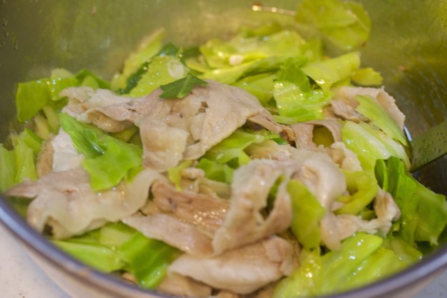 《春キャベツと豚肉の重ね蒸し〜香味だれあえ〜》