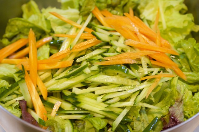 レタスを手でちぎって