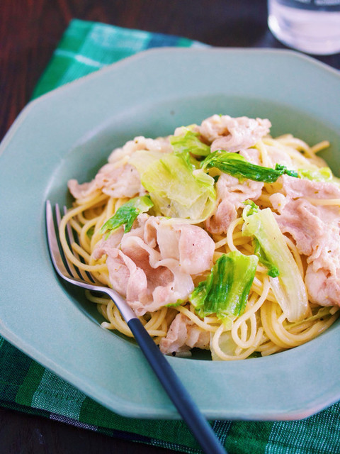 『豚しゃぶとレタスのゆずマヨパスタ』