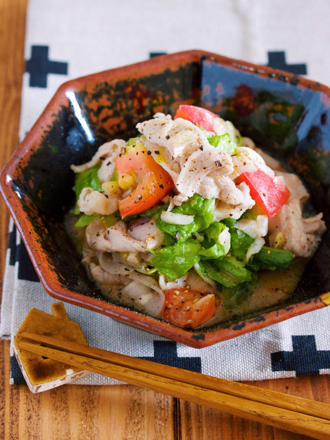 『豚しゃぶとレタスのネギ塩トマトだれ』