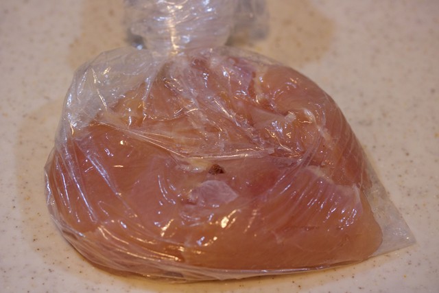 鶏むね肉は片栗粉を揉み込むので