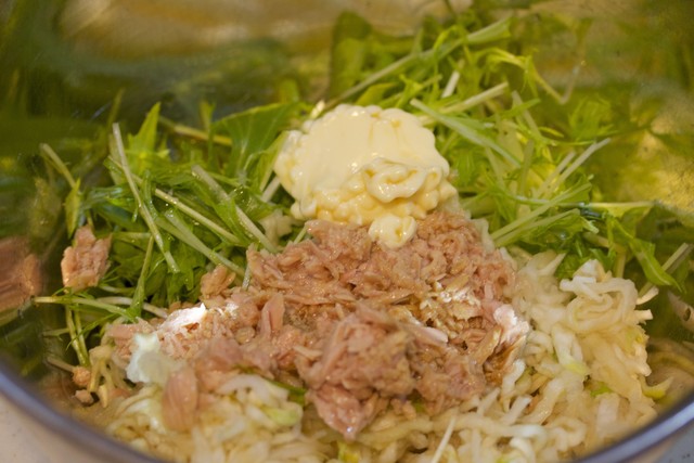 マヨネーズ・ポン酢・柚子胡椒で和えるだけ。