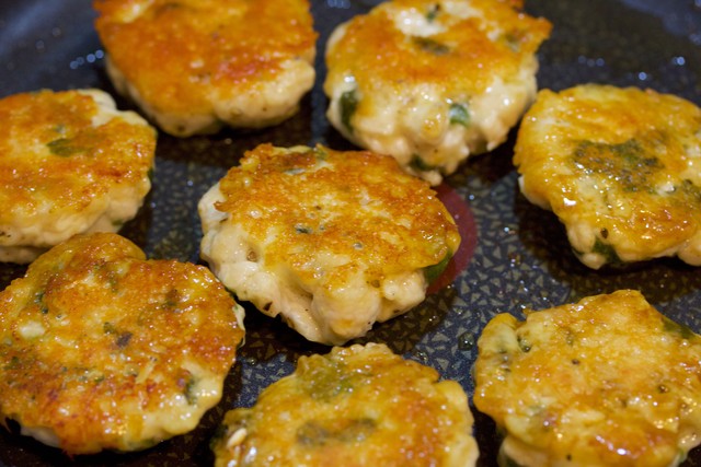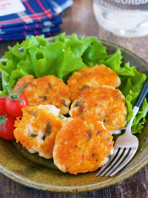 鶏むね肉をミンチ状にし青じそと合わせてつくね状に。あとはフライパンに並べチーズを乗せて焼きしょうゆをまわしかけたら出来上がり♪たったこれだけでとーってもシンプルだけどチーズの旨味とコクで淡白な鶏むね肉も立派なメインに大変身!カリカリに焼けたチーズそして、最後に加えたしょうゆが香ばしく食欲をかきたてますよ〜♪