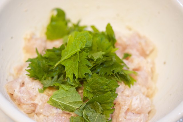 青じそと合わせてつくね状に。