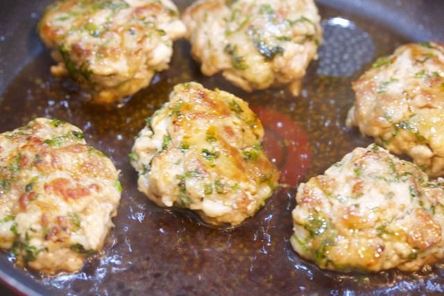 豚こまを軽く刻み千切りにした大葉と合わせて丸めます。あとは、フライパンで焼いて甘辛の照り焼きだれを絡めるだけ。たったこれだけだけど豚こまが驚くほど柔らか〜。また、甘辛でしっかり味なのですが大葉で後味さっぱり♪これからの季節のお弁当にも最適ですよー!