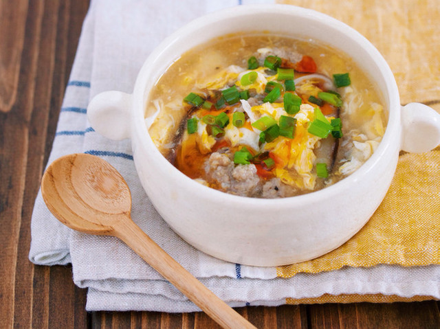 『きのことかき玉のうまだしとろみスープ』