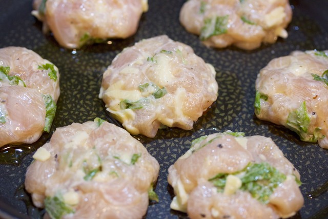 むね肉を粗く刻み手でちぎった青じそとチーズ・調味料を混ぜ合わせて丸めフライパンで焼きます。最後に、塩だれを絡ませたらできあがり( ´艸`)チーズ入りで、男子ウケ抜群!!ビールもグビグビすすみますよ〜♪