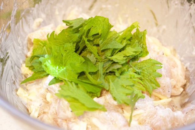『むね肉 de 青じそ入り♡塩だれつくね』