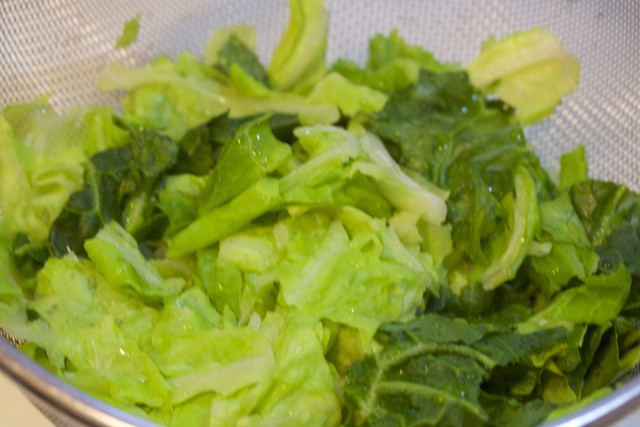 春キャベツは手でちぎってお湯をかけます。