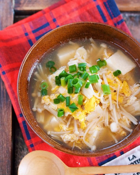 『豆腐とえのきのとろとろかき玉スープ』