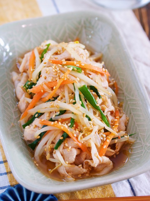 《豚肉ともやしのごまポン酢和え》