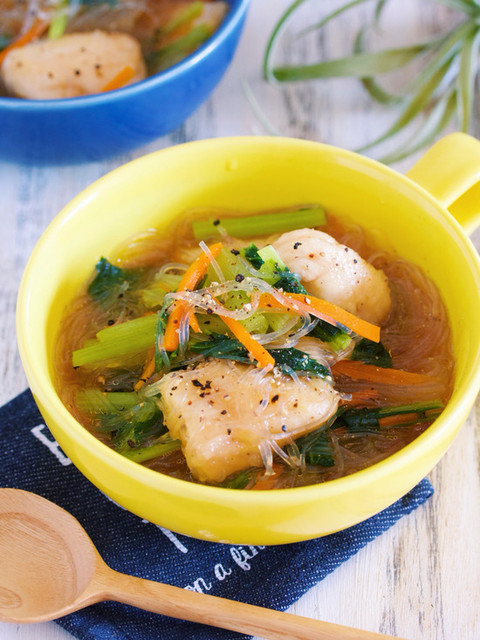 『鶏むね肉と春雨の具沢山おかずスープ』