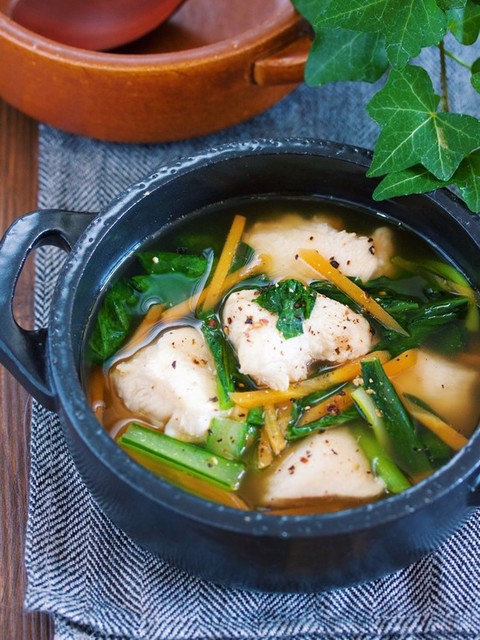 『鶏むね肉と小松菜の中華風♡とろみ生姜スープ』