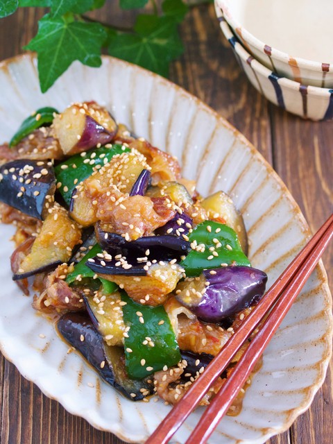 フライパンで、豚バラ→なす→ピーマンの順に炒め甘辛の味噌だれを絡めるだけ。たったこれだけだけど味はしみしみ、なすはトロトロ♪味噌をたっぷり使った甘辛い味付けなので白ご飯がはかどります!笑まさに、これから食欲が落ちる夏にぜひ作って頂きたいレシピです。