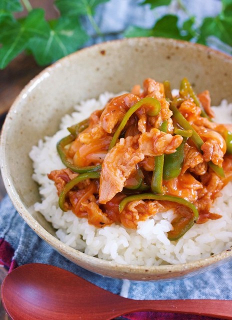 フライパンで豚ひき肉と色紙切りにしたピーマン・玉ねぎを炒め タレを絡めるだけ♡最後に水溶き片栗粉を加えるので具材によくタレが絡みまさにご飯がすすむ一品に。また、豚ひき肉の旨味と甘辛だれのおかげでピーマンの苦味も軽減!!一袋なんてペロリと完食できますよ♪とっても簡単でとってもオススメですのでお休みの日のランチにぜひ♡