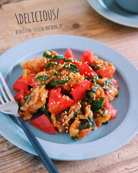 『カリカリ豚バラとトマトの