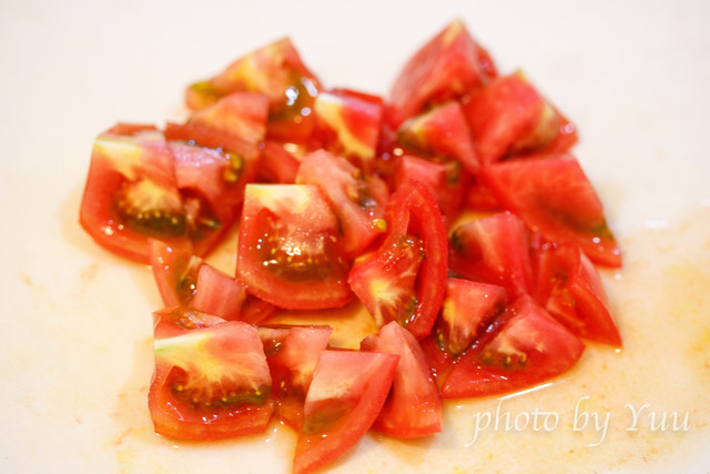 トマトを乱切りにし