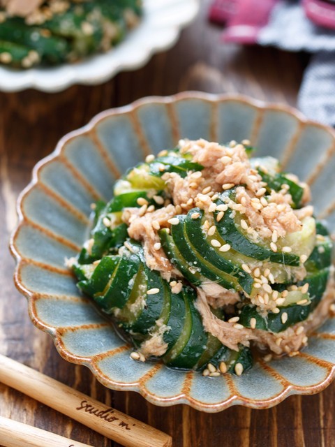 きゅうりは蛇腹切りにすることで衣がよく絡む上、歯ごたえや食感もよくなりポリポリポリポリ...も〜っ、止まらんっ!また、ツナと甘辛のごま衣が好相性すぎて、まさに無限きゅうり状態に。今回2本で作ったんですが、瞬時に胃袋に消えたので倍量作ってもいいかも。笑とにかく、きゅうりの大量消費にもオススメです!ちぎって和えるだけととっても簡単な上に、漬け込みすら不要なので、今夜のあと一品にぜひ!