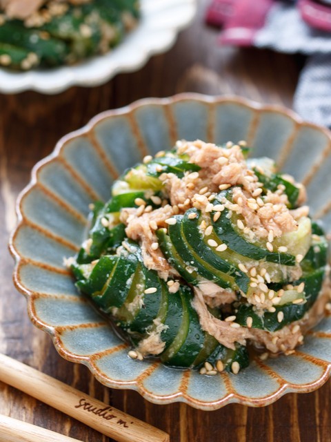 《やみつき♡蛇腹きゅうりのツナごま和え》