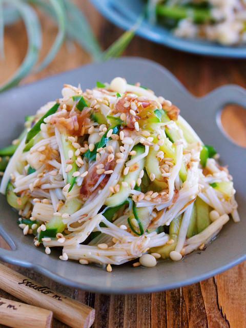 きゅうりを切ってツナ缶+梅+ポン酢+かつお節で和えるだけの簡単おつまみ副菜。塩もみ不要なので思い立ったらすぐできます。しかも、塩もみしないのできゅうりのシャキシャキ食感が生きてきます♪梅入りなので殺菌効果もありこれから暑くなる季節に最適ですよ〜。