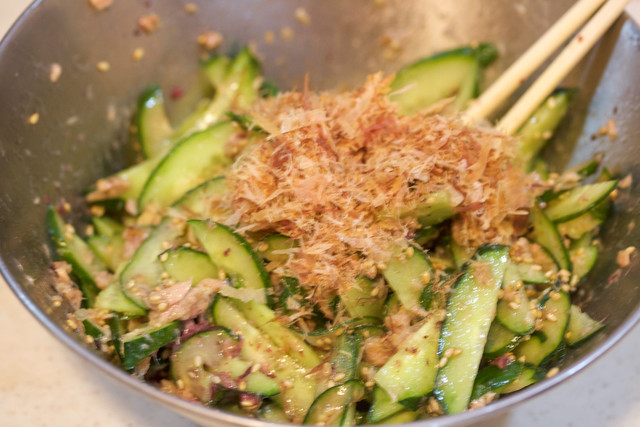 ツナ缶+梅+ポン酢+かつお節で和えるだけの