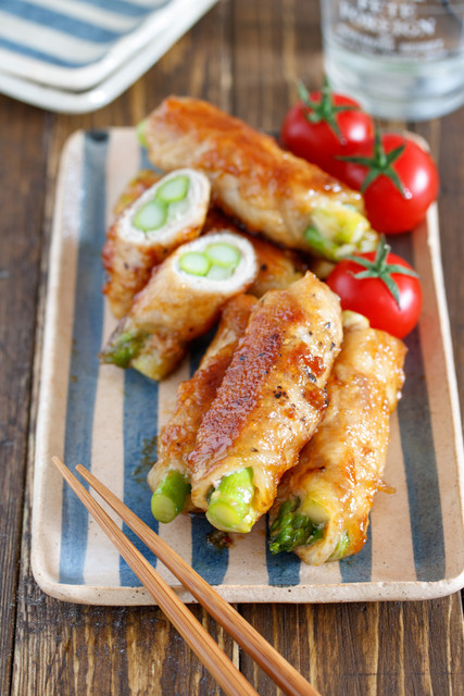 アスパラガスを使った男子が喜ぶがっつり系メイン。アスパラガスを豚肉で巻いたら、あとはフライパンで焼いてタレを絡めるだけ。豚バラの旨味とタレのパンチでアスパラガスがモリモリ食べれますよ〜♪ご飯との相性もバッチリな上、冷めても美味しいのでお弁当にもどうぞ!