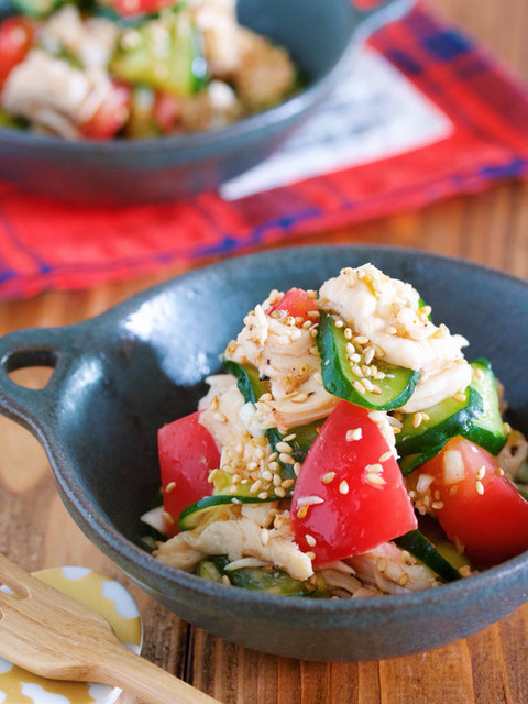 『ささ身ときゅうりのネギ塩トマトナムル』