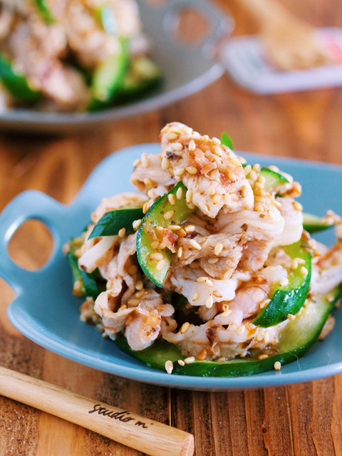 『豚しゃぶときゅうりの梅ごまおかか和え』