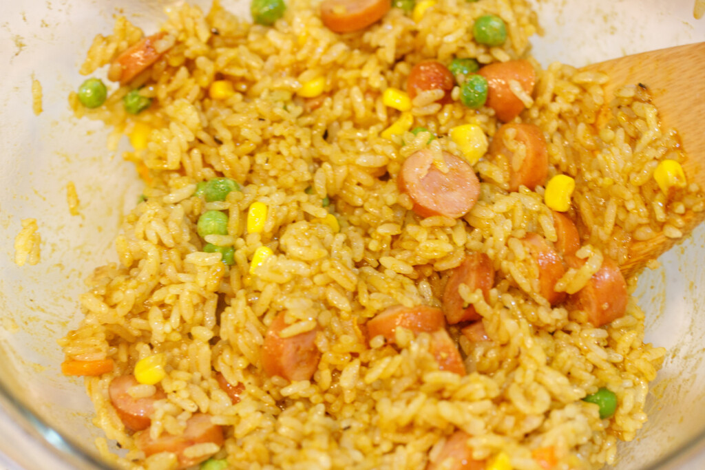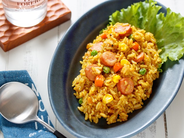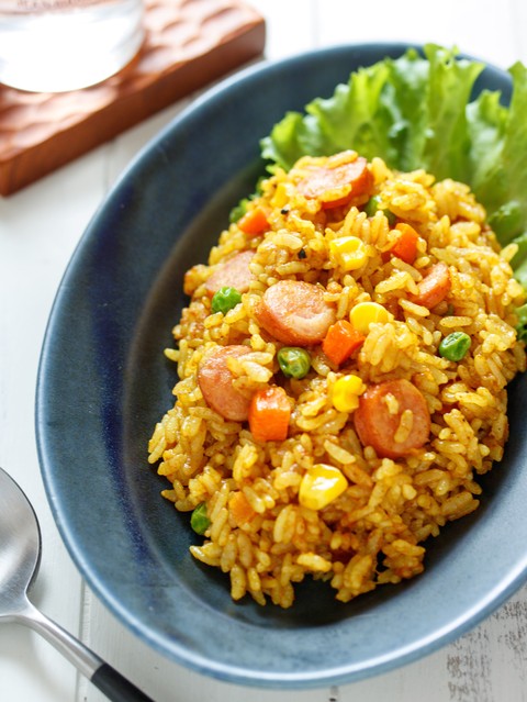 スパイシーなカレーピラフの完成です。