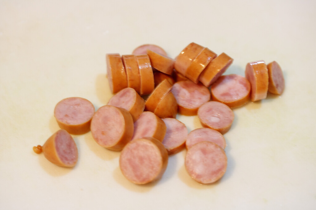 1. ウインナーは輪切りにする。