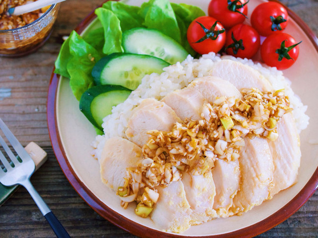 鶏むね肉をレンジでチンして蒸し鶏に。