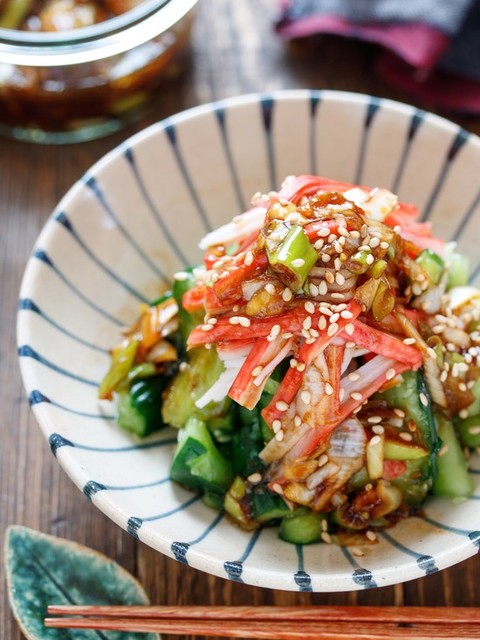 かち割りきゅうりとカニカマの香味ねぎソース