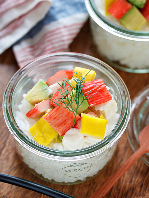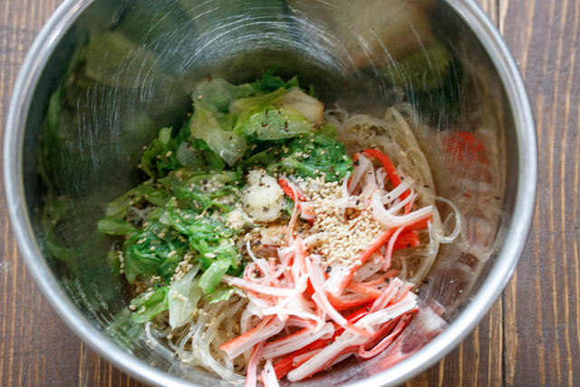 戻した春雨と手で裂いたカニカマを合わせ