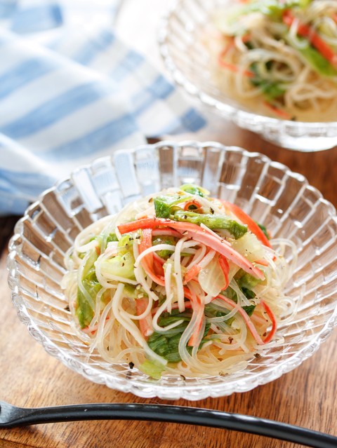 《カニカマレタスと春雨の塩だれサラダ》