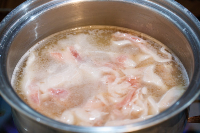 鶏ガラ・しょうゆ・塩で作ったスープをぶっかけました。