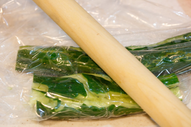 叩いて割ったきゅうりを乗せて