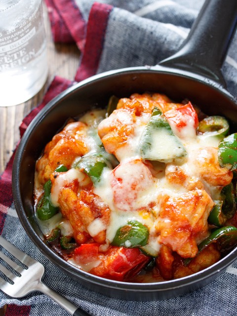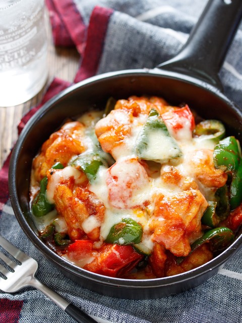 話題のチーズタッカルビを、鶏肉×ピーマン×トマトで夏バージョンに。濃厚なんだけど、トマトが入ることで後味さっぱり!見た目もカラフルで食欲をそそります♡作り方も、もちろん簡単で、鶏肉に下味を揉み込んで、ピーマンとトマトと炒め、あとはチーズを乗せて焼くだけ。 味付けも焼肉のタレがベースなので、とーっても簡単!