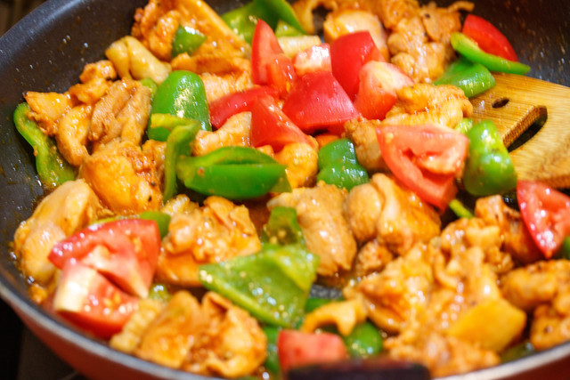 鶏肉×ピーマン×トマトで夏バージョンに。
